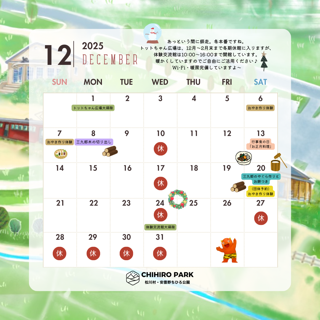 体験交流館は、12月26日(金)まで、10:00~16:00(水曜休館)で開館しています𖤐 ̖́-