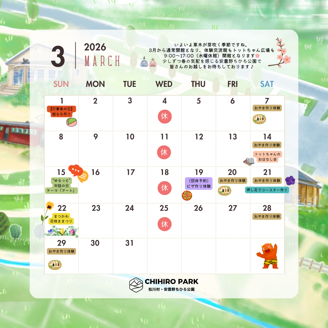 この3月から、土日祝を中心に開催される【おやき作り体験】や毎月第二土曜日の【トットちゃんのおはなし会】・毎月第三土曜日の【押し花でコースター作り】も再開となります♪